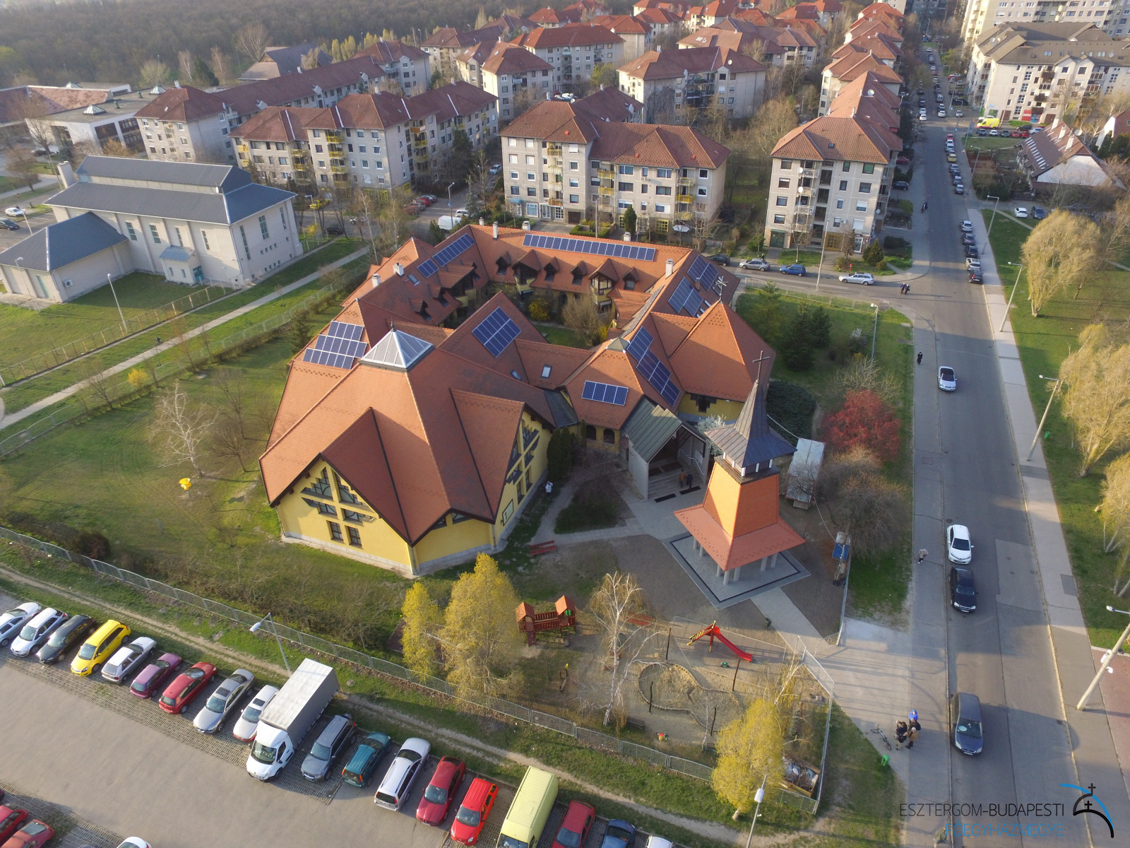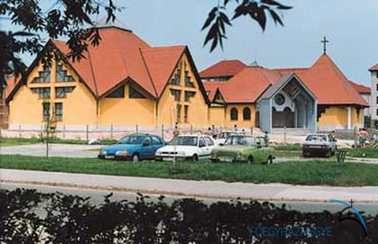Az 1983–90 közt épülő új lakótelepen a Váci Püspökség 1989-ben hozza létre a plébániát. Dr. Tomka Ferenc plébános és Jávorka Lajos káplán egy tömbházban vásárolt lakásba költöznek, és 6 éven át ez lesz a lelkipásztori munka központja, a plébániai összejövetelek s a hétköznapi misék helye. A vasárnapi és ünnepi istentiszteletekre a közösség használhatta a lakótelep egyetlen 300 főt befogadó nagytermét, amely a politikai fordulatig a Kommunista Párt, majd utána az Önkormányzat tulajdona. A rendkívülien szekularizált lakótelepen, amelyen többségében fiatal családok (sok rendôr és katonatiszt) lakik, kezdetben 80–l00-an vettek részt a szentmisén. A közösség elsődleges céljaként kitűzött kölcsönös szeretet hatására nagyszámú felnőtt és fiatal tért meg. Főként általuk a templom elkészülésének idejére az egyházközséghez tevékenyen kapcsolódók száma 800 fôre nőtt. A templomnak az állami hatóságok eredetileg a lakótelep szélén jelöltek ki helyet. Hosszú küzdelemmel sikerült elérni, hogy a telep közepén épülhessen. A templom, illetve plébániaközpont alapkövét 1991-ben Marosi Izidor váci megyéspüspök tette le, megáldását 1995-ben Paskai László bíboros, esztergom-budapesti érsek végezte. Az épületegyüttes földszintje (1400 m2) magában foglalja a szentségi kápolnát (75 m2), amely a hétköznapi misék, a csend és az imádság helye, a nagytermet (400 m2), ahol a vasárnapi szentmisék és különböző összejövetelek, rendezvények is folynak, valamint hittantermeket, irodákat, papi lakásokat. Az alagsorban (1000 m2) helyezkednek el: az urnatemetô (Szôlôssy Enikő művészi szobraival), a karitász helységek, garázsok, raktár, műhely, tornaterem. A tetőtér (800 m2) beépített egyharmada egy lakrész, amelyben 3 szociális testvér lakik 1994 óta. Ôk vezetik az épületben működő mentálhygiéniás-családgondozó központot. A plébániaközpontot az alapító lelkipásztorok és a közösség elgondolásának megfelelôen B. Greskovics Klára és Becker Gábor építész-házaspár tervezte. A plébánia az 1993-as egyházmegyei határrendezés során került a váci egyházmegyétől az esztergom-budapesti főegyházmegyéhez.