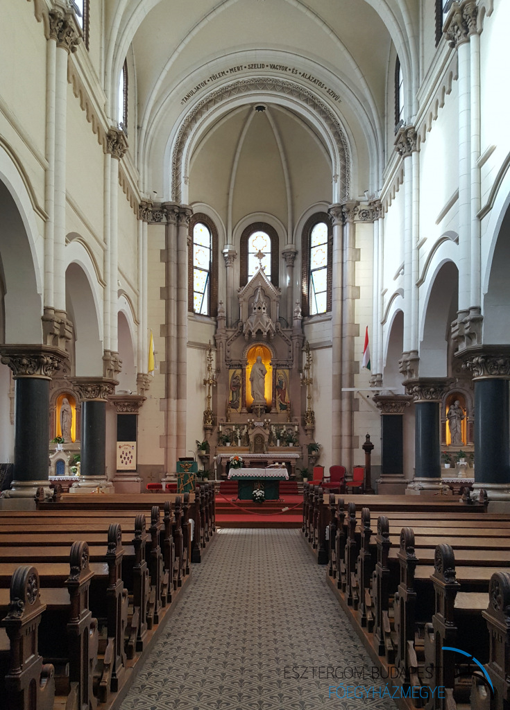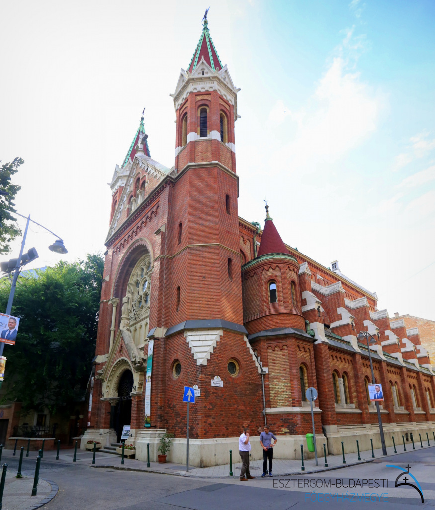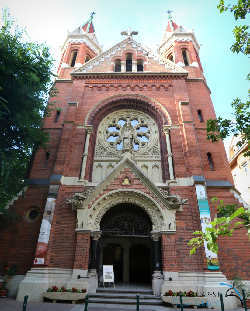 A jezsuiták elõször a XVI. sz. közepén telepedtek le Magyarországon. A rend felosz-latása, majd visszaállítása után 1853-ban tértek vissza hazánkba, és 1880-ban jöttek Budapestre a kalocsai rendházból. Templomukat és rendházukat 1888-1891 között építették fel egyházi és fõnemesi támogatással. Kohl Medárd püspök szentelte fel 1909-ben. Ez a templom volt a jezsuita lelkipásztorkodás központja Budapesten 1950-ig. 1989 végén ismét a jezsuita atyák gondozásába került.A templom terveit Kauser József készítette francia román átmeneti stílusban (a román korszak jellegének betartásával és a gót rendszer konstrukcionális részének felhasználásával épült, azaz a román díszítéssel ellátott homlokzat mellett támpillérek alkalmazását is látjuk). A kivitelezõ Kauser Gyula volt.A fõhomlokzatot magas oromzatú bejárati kapuzat díszíti, amelynek sárkány alakjai között az oromcsúcson a hitet jelképezõ angyal szobra áll, mögötte pompás rózsaablak. A fõhomlokzat nem túl magas tornyai nyolcszögűek.Külseje vörös sajtolt téglából és terméskõbõl készült. A hajókat és a szentélyt bordás keresztboltozat fedi. A belsõ berendezés építményén Jézus szobor áll, mellette két angyal mozaikképe. A nyugati mellékhajó oltárán az imába merült Szűz Mária, a keleti mellékhajóban a kisded Jézust ölében tartó Szent József szobra áll. A szobrokat és a keresztút domborműveit a müncheni Mayer-cég készítette, az oltárokat az oberaimi Klefer-cég emelte márványból. A Szűz Mária-oltár melletti márványoszlopon vannak elhelyezve a három kassai vértanú csontereklyéi. A liturgikus térátrendezés Bardon Alfréd tervei szerint készült 1969-ben.